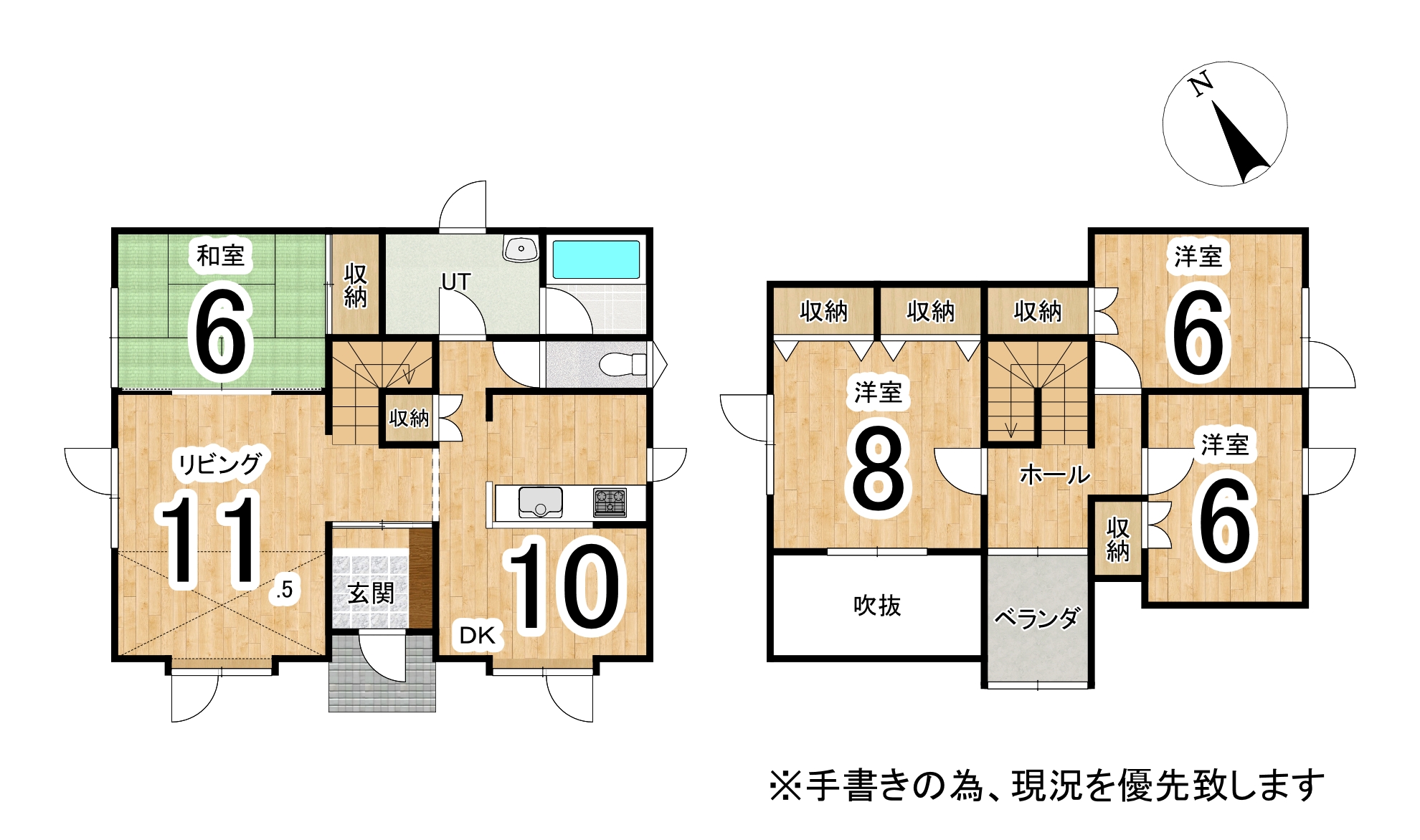 桜木小・北斗中エリア、都市ガス・駐車3台以上・対面型キッチン・一坪ユニットバス、旧イワクラホーム施工4LDK戸建